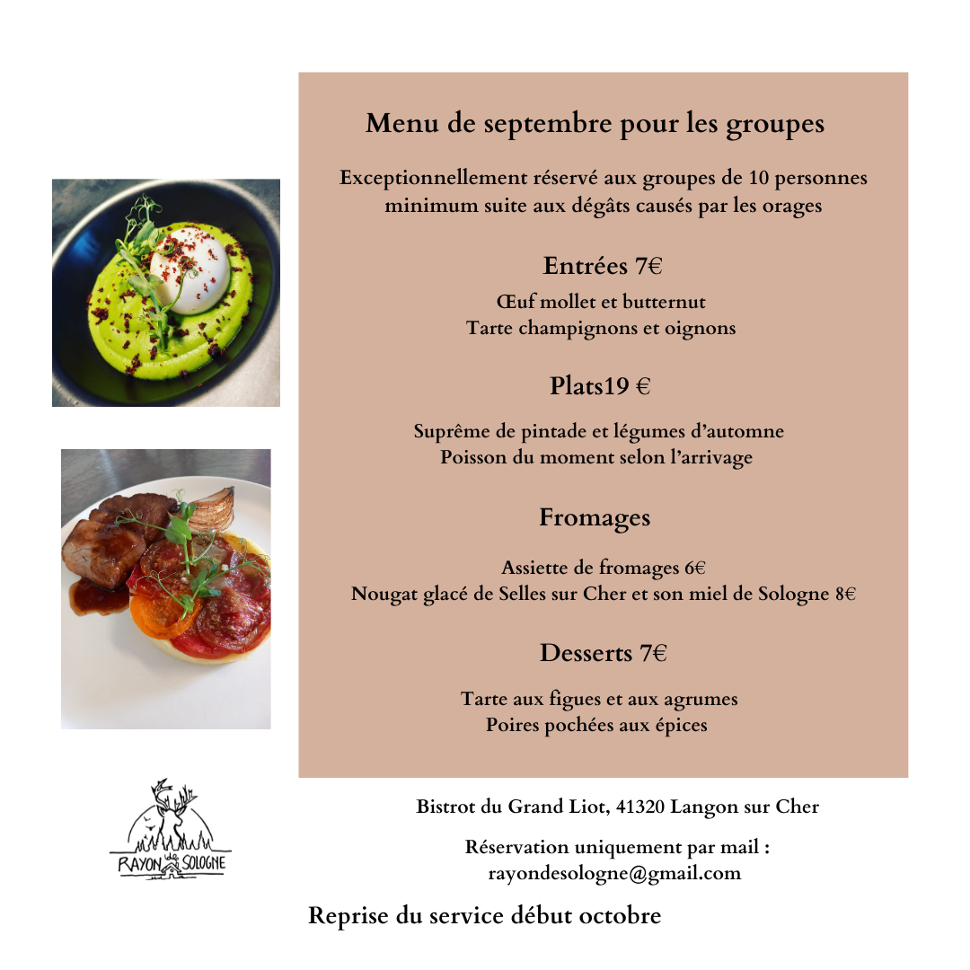 Le bistrot du Grand Liot a préparé un menu spécialement pour les groupes de 10 personnes minimum, sur ce mois de septembre.